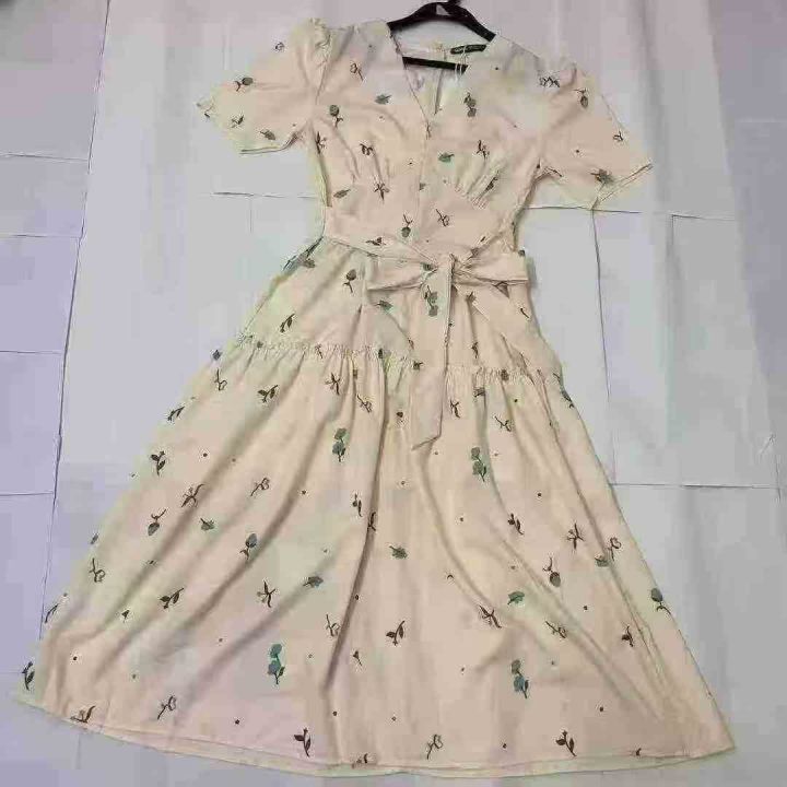 度假绵绸,V领连衣裙遮肉收腰时尚粉色减龄气质长裙通勤,独立包装,码数123...