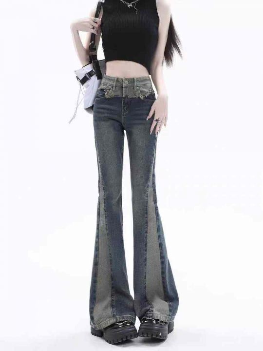 秋冬新款高品质复古网红设计款阔腿微喇叭牛仔长裤,独立包装带吊牌带防伪扣...