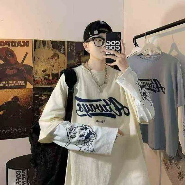 全清价5.9捡漏326件假两件长袖可爱图案t恤男潮牌嘻哈春秋棉T上衣,独立包装...