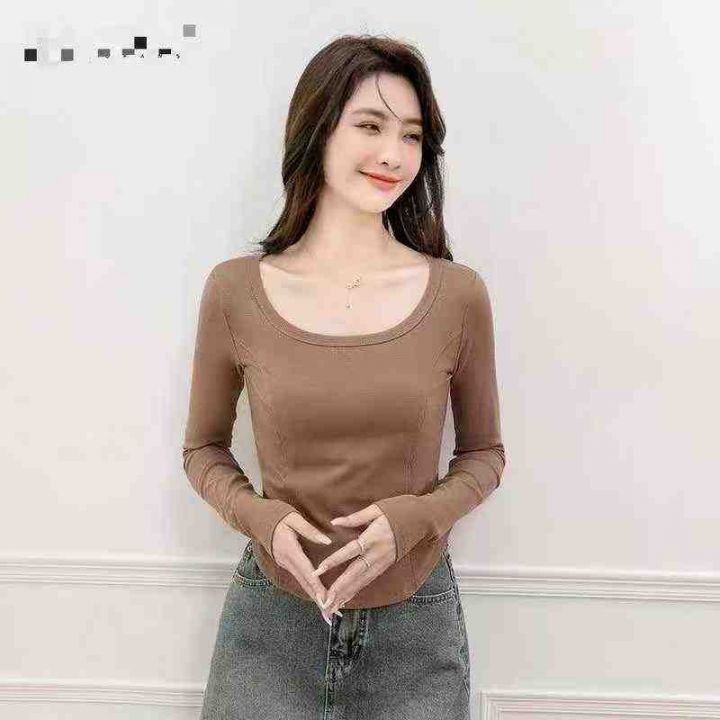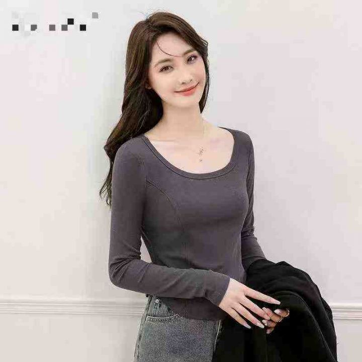 修身纯欲U领纯棉打底衫吊带裙内搭长袖T恤女紧身大领口上衣春秋季,数量245...