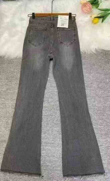 灰色辣妹微喇牛仔裤新款高腰显瘦直筒马蹄毛边喇叭裤子851件,尺码S~2XL独立...