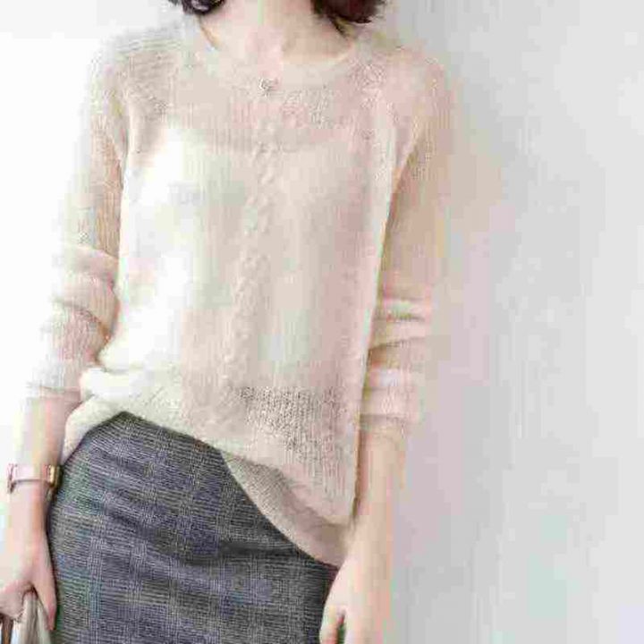2025年春秋新款时尚百搭圆领长袖针织衫宽松显瘦打底上衣,独立包装,均码,...