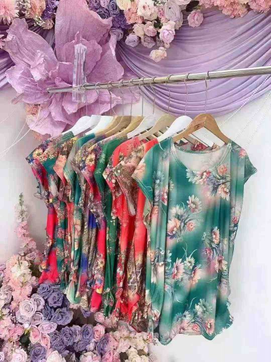 上身短袖[太阳]全清价8.5、6800件、均码。 中老年妈妈装洋气宽松花短袖,...