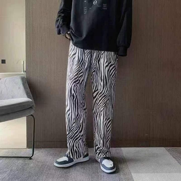全清6.8分货+1春秋季男女同款薄绒斑马纹裤子直筒宽松百搭阔腿休闲裤拖地裤...