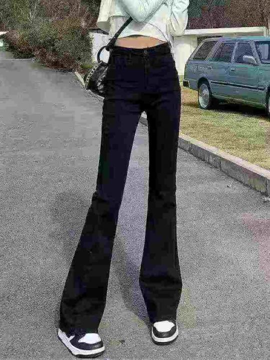 黑色弹力微喇牛仔裤春季新款高腰显瘦喇叭裤修身拖地马蹄裤子150件,独立包...