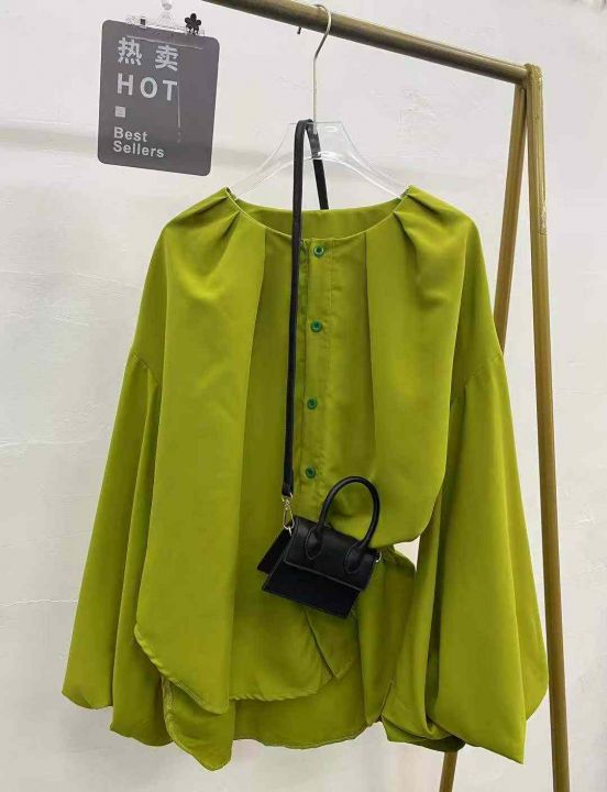 压褶简约衬衣111件7.9,灯笼袖别致茶系上衣,下摆弧形设计,简约宽松版,码...