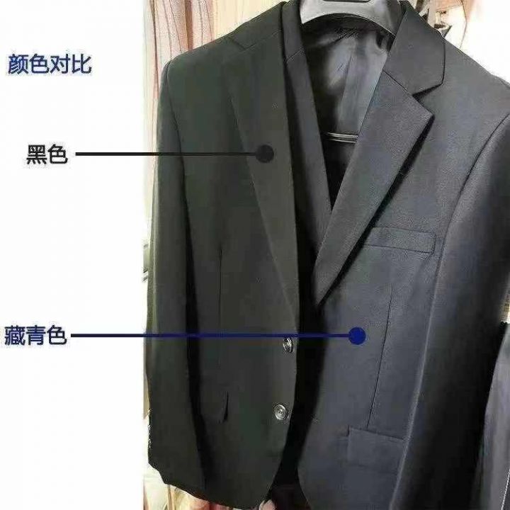 藏青色西装套装800套左右,商务修身正装免烫,两边开叉,码数34-50配有衣架...