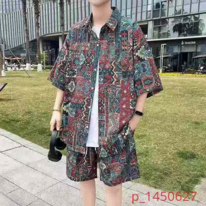 清货价8.8,数量326套左右夏季漫画花衬衫套装男夏威夷海边速干沙滩短裤宽松...