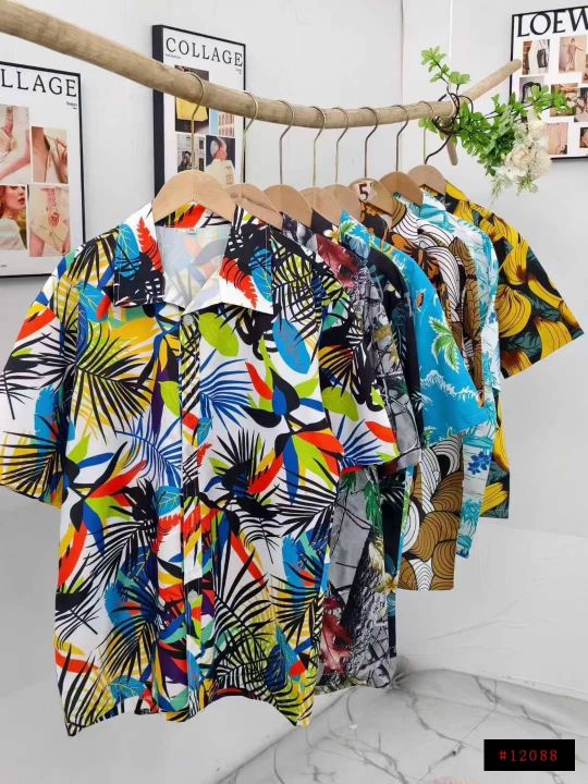 7.8清电商仓回收177件夏威夷海滩度假风男士衬衫,码数S-2XL。宽松大版型,...