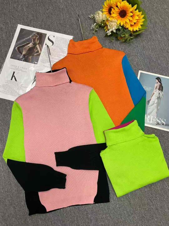秋冬新款半高领宽松拼色显瘦长袖内搭时尚针织衫,独立包装面料柔软厚实,15...