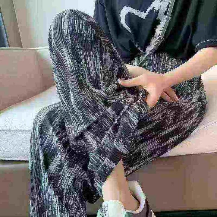全清价6.9元冰凉感直筒冰丝阔腿裤女夏季薄款休闲防蚊显瘦垂感扎染裤子,独...