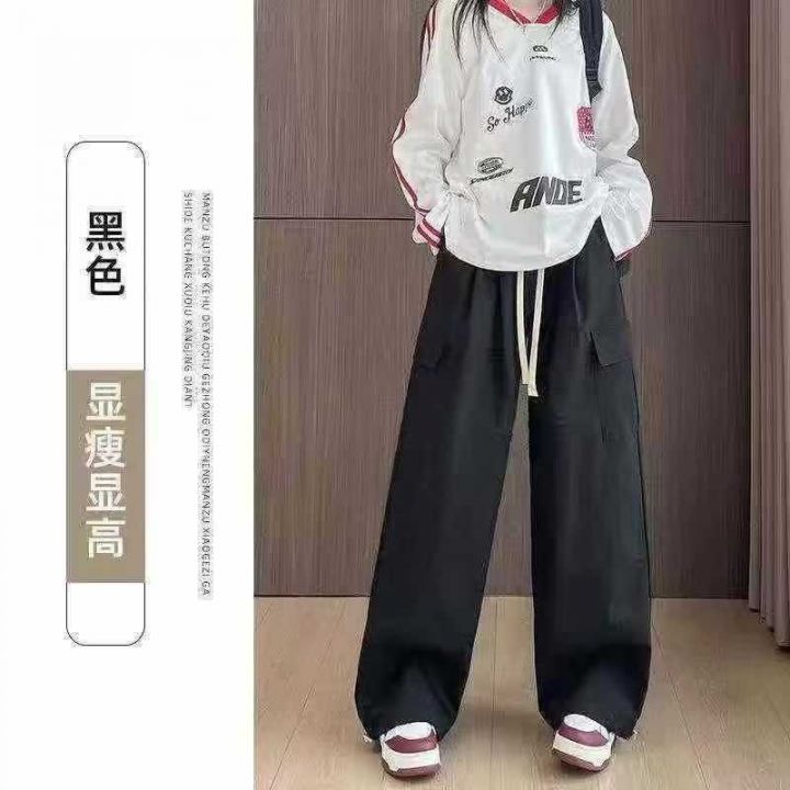 冰丝阔腿裤女夏季高腰垂感黑色显瘦百搭2025新款宽松大码mm直筒裤170条,独...