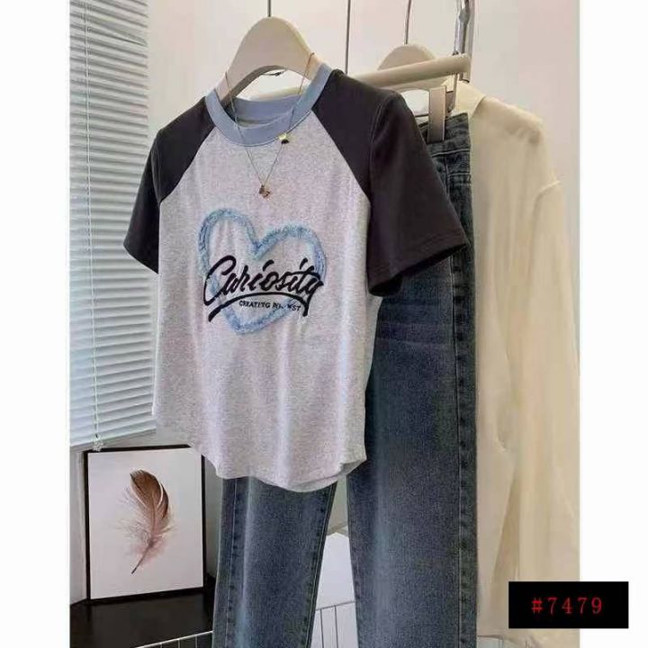 [發]撞色爱心短款插肩辣妹体恤260件左右独立包装 码数1到4纯棉面料 带植...