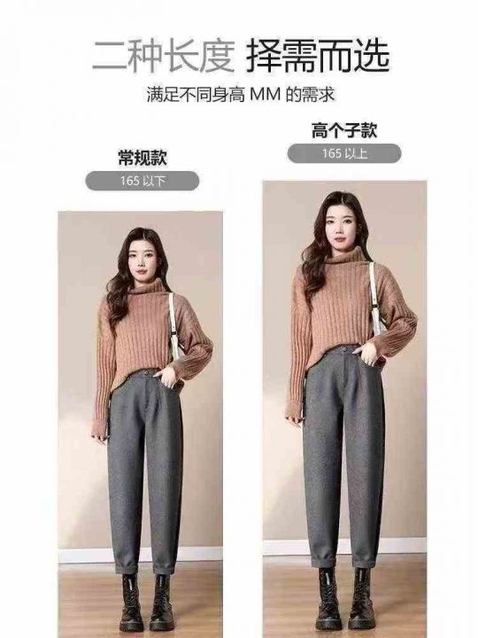 秋冬小脚毛呢裤设计烟管女磨毛英伦高腰显瘦休闲西装裤,独立包装,S,M,L...