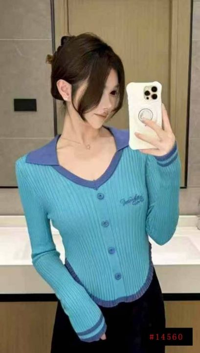春秋新款辣妹性感纯欲风刺绣单排扣针织PoLo领套头毛衣,独立包装,均码面料...