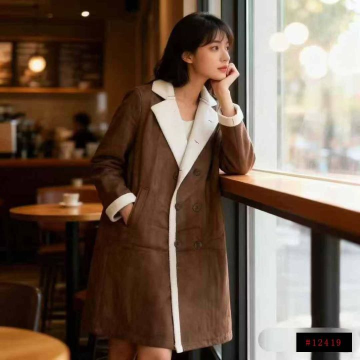 9.9清工厂回收3000件羊羔毛仿鹿皮绒女冬季宽松中长款棉发衣,码数M-3XL。内...