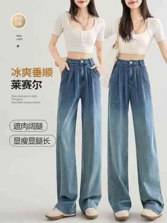 雅赛尔天丝牛仔裤女夏季新款高腰垂感直筒阔腿裤91条全清14.8元,码数26-30...