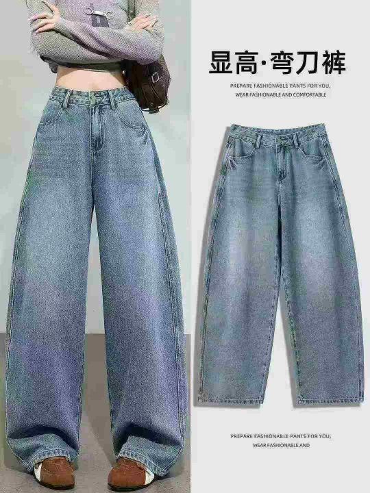 蓝色弯刀直筒牛仔裤女新款高腰显瘦百搭宽松镰刀阔腿裤72条秒杀13.8元,26-3...