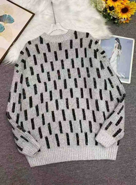 秋冬新款宽松提花大板加厚圆领套头毛衣,独立包装,均码大版型面料软糯厚实...