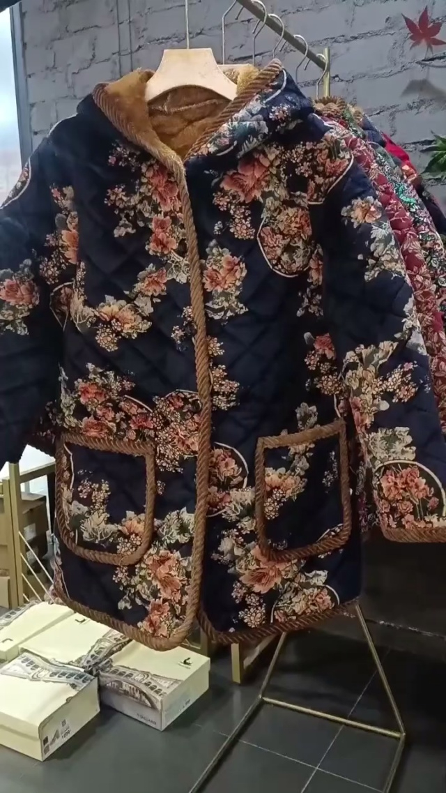 2800件秒杀24元,100件起25元,妈妈老太太中老年加绒加厚中差长款花花罩衣...