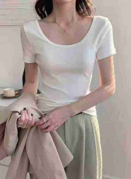 [月亮]:5.5清457件[月亮]:纯棉拉架棉白色高弹U领T恤[月亮]:S-XL 独立包...