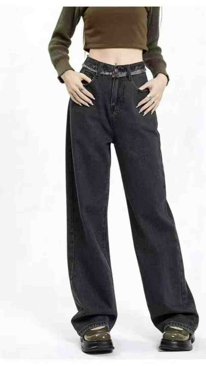 春秋新款洗水棉网红复古直筒阔腿牛仔裤,独立包装带腰卡,码数S-XL码,180...