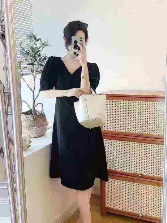 150件左右黑色气质赫本风V领茶歇法式高级感小黑裙连衣裙,雪纺面料,尺码S-...