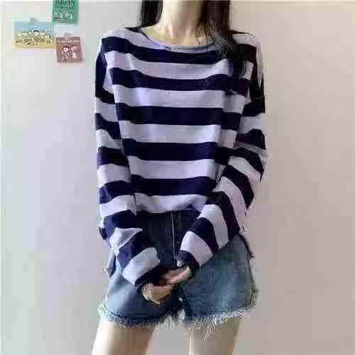 [月亮]:5.5清295件[月亮]:韩系慵懒宽松休闲辣妹系列罩衫上衣[月亮]:条纹...