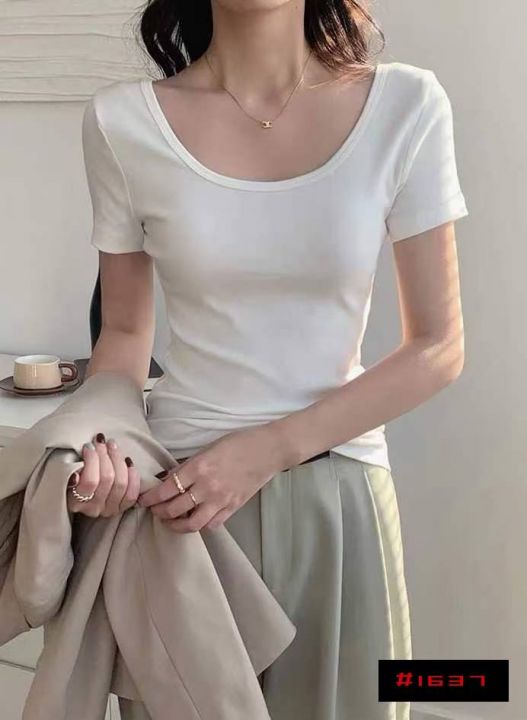 [月亮]:5.5清457件[月亮]:纯棉拉架棉白色高弹U领T恤[月亮]:S-XL 独立包...