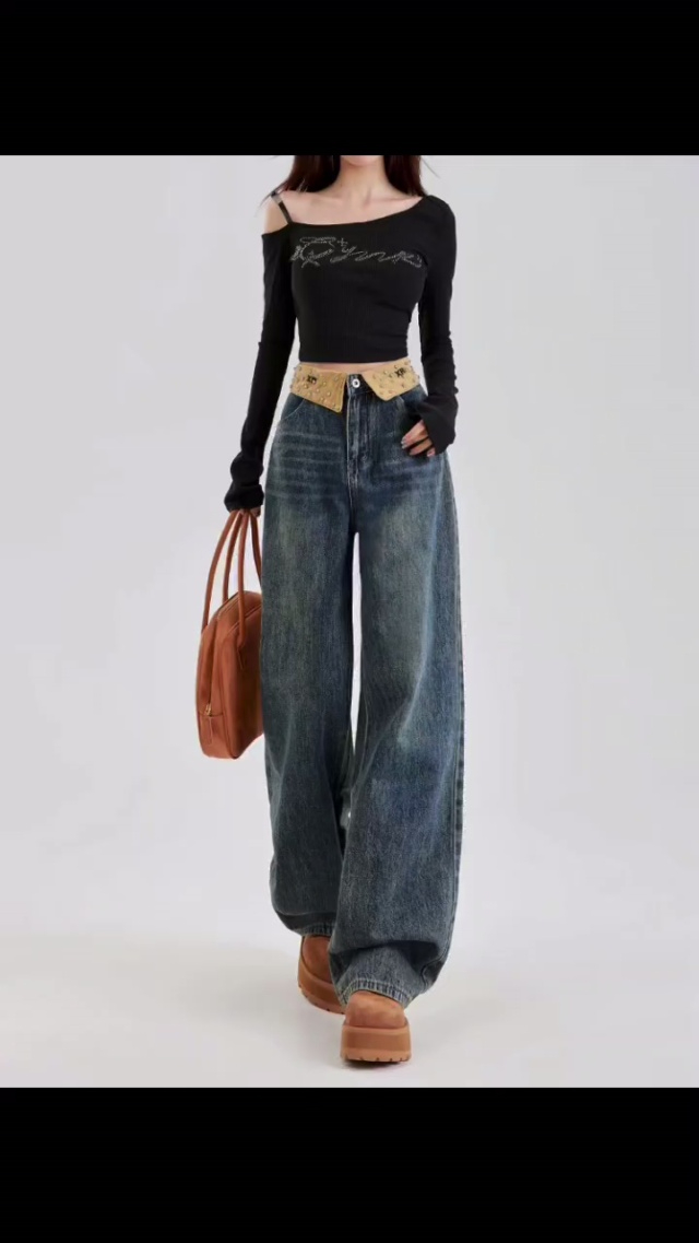 新款宽松百搭显瘦高腰窄版女款直筒裤子,整款两色(杏色只有几十件)独立包...