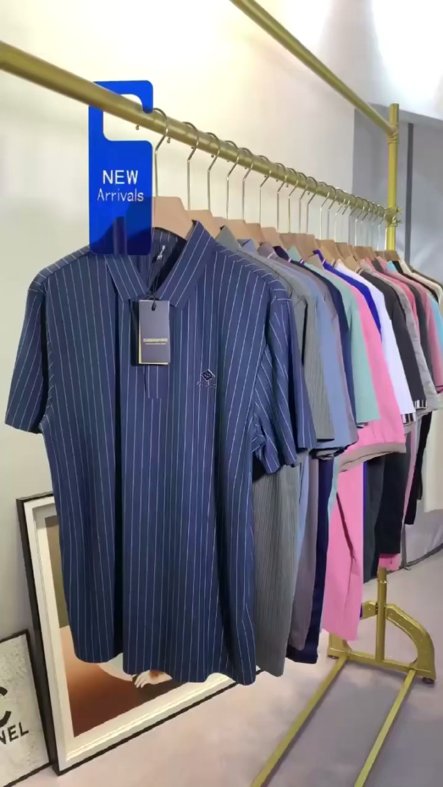 蓝色竖条纹短袖衬衫99件7.8,Polo领,图案刺绣,码数1-4码(S-XL),独立包...