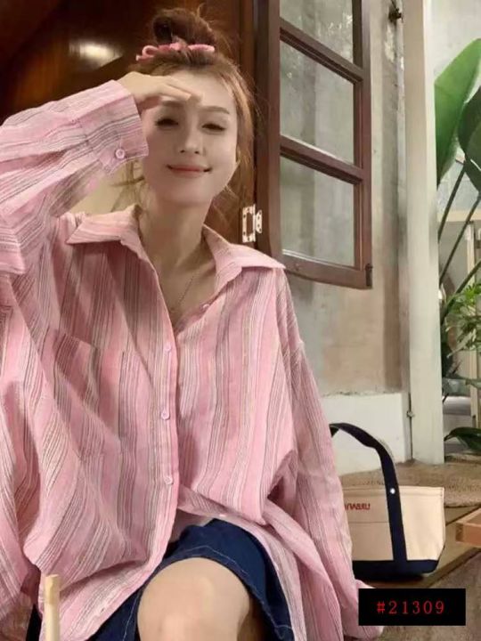 [月亮]:8.5清168件(不分货)[月亮]:夏季薄款条纹韩系防晒开衫衬衫[月亮]...
