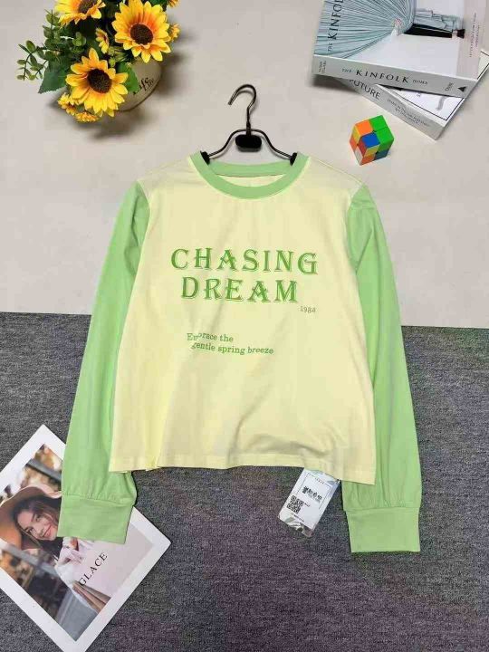春秋设计独特拼色纯棉长袖T恤女,单款单色,品质好,有独立包装带吊牌,均...