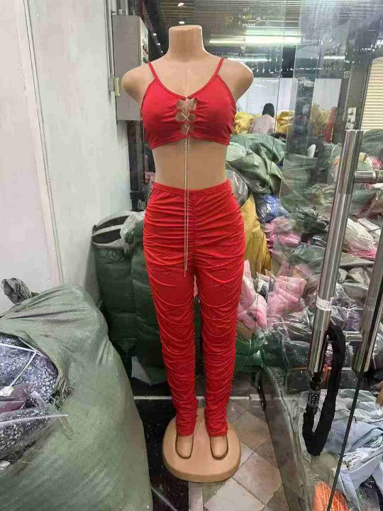 6.8清欧美时尚辣妹性感吊带+褶皱长裤两件套,整款三色,数量:217套,码数...