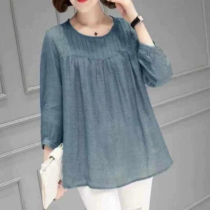 春夏文艺棉麻t恤女式九分袖宽松娃娃衫上衣中年套头亚麻衬衫大码,整款4色,...