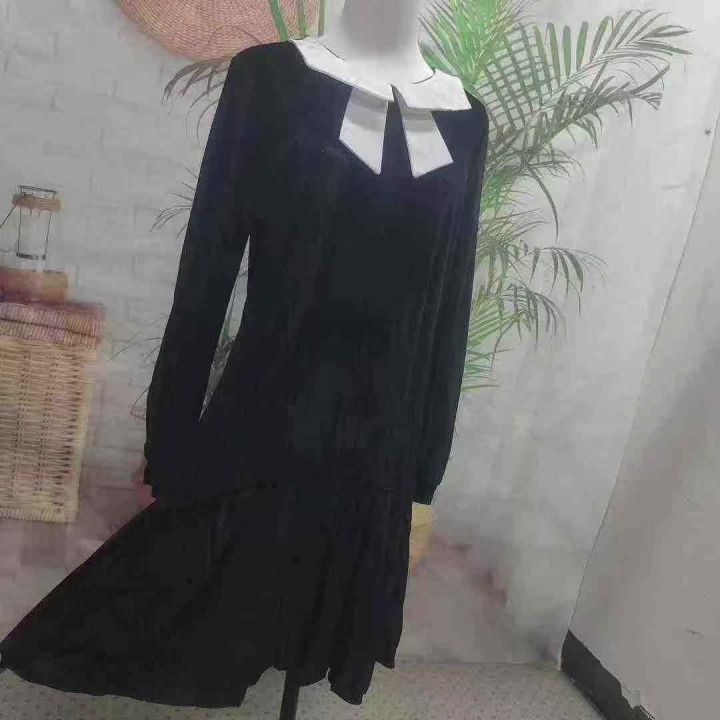 5.5元[爱心][爱心] 赫本风黑色金丝绒长袖连衣裙,独立包装,白色衣领串色...