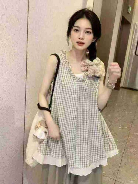 韩系复古无袖上衣170件6.9,格子花领口,拼接设计,码数2-3码,独立包装...