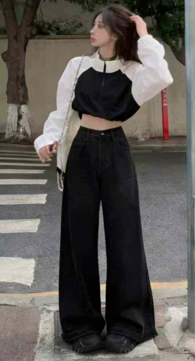 春季新款网红复古洗水棉黑色直筒阔腿牛仔裤,独立包装带吊牌,码数S--L,码...