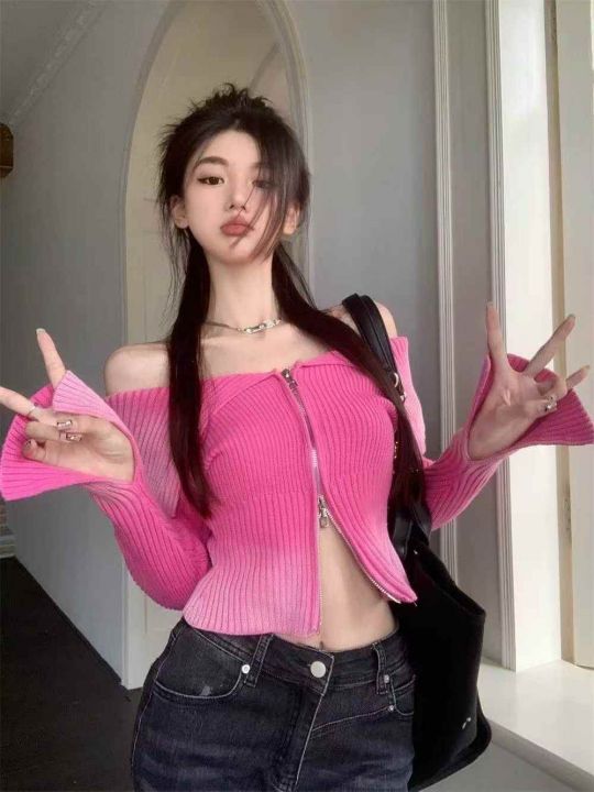 秋季新品爆款美拉德色系个性独特炸街蝴蝶设计款长袖针织衫,独立包装,均码...