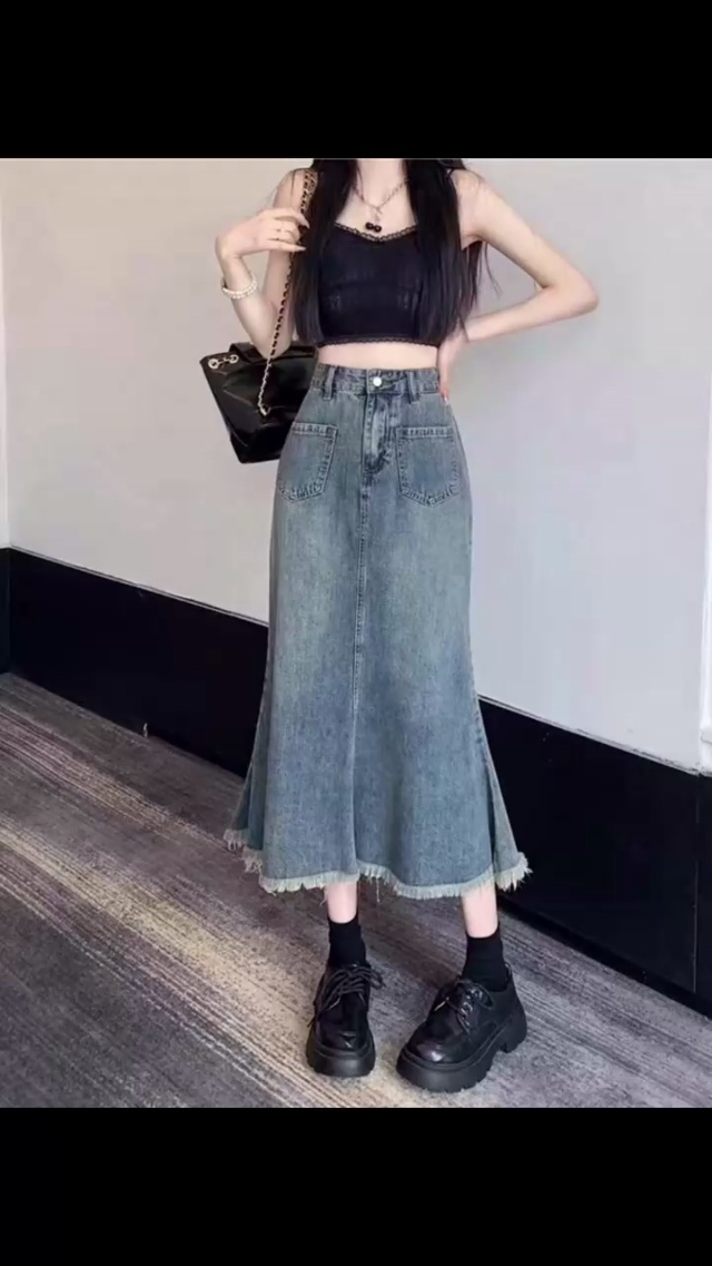 秋冬新款洗水棉网红爆款牛仔半身长裙,不限视频款,独立包装带吊牌或是腰卡...