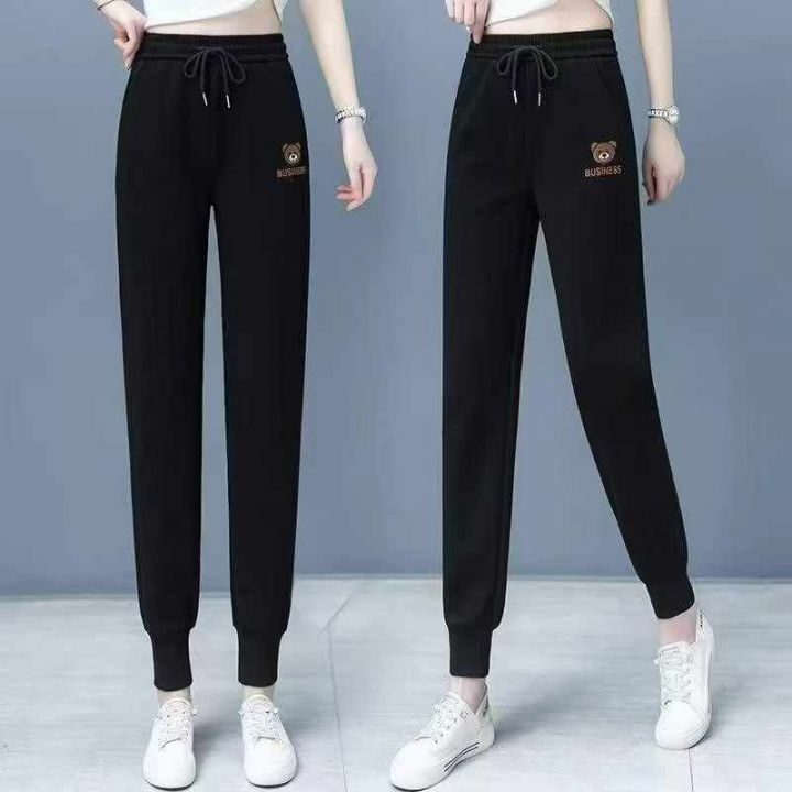 春季新款网红小熊哈伦时尚休闲宽松松紧腰束脚棉卫裤,独立包装带吊牌,码数...