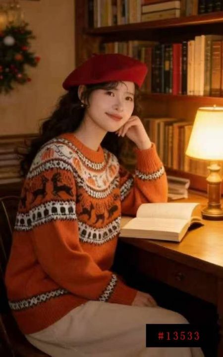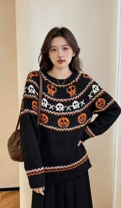 秋冬秋款宽松慵懒风提花加厚北极绒套头毛衣,独立包装,码数S--2XL码,100...