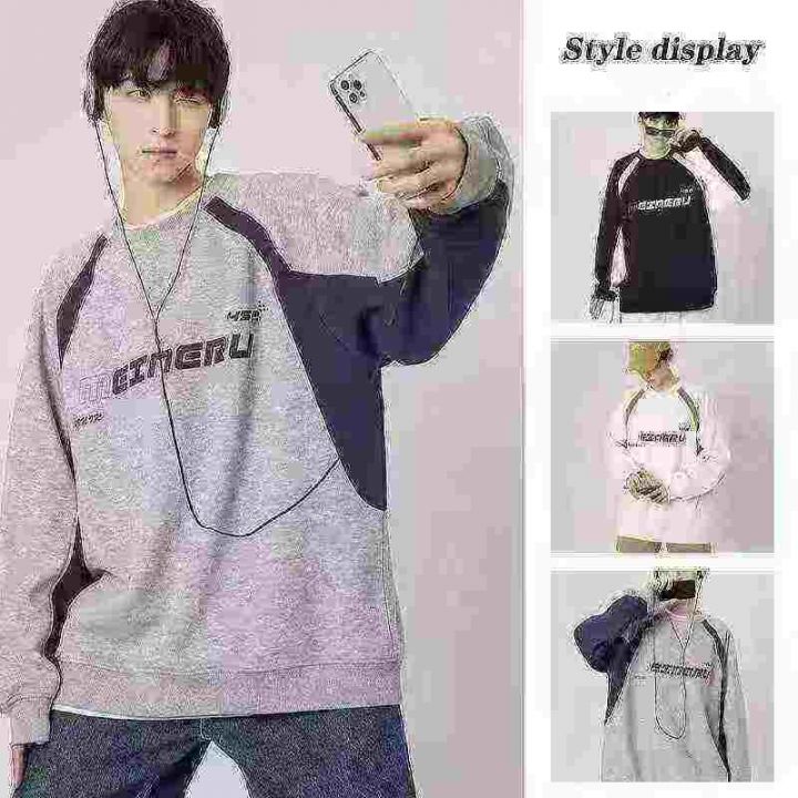 169件,卫衣男中长款外穿男士美式宽松ins上衣长袖秋季新款拼色针织卫衣,独...