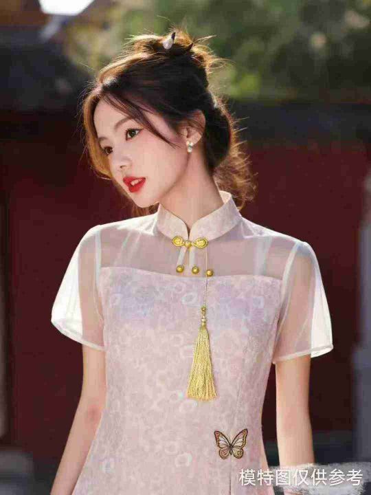 8.9清电商仓回收164件绝美国风新中式改良蝴蝶盘扣流苏挂坠连衣裙,码数M-XL...