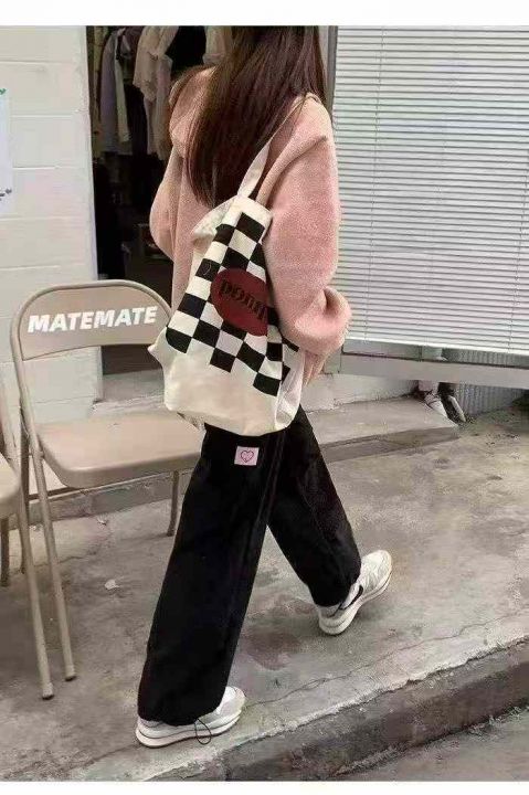 春季新款网红复古爱心灯芯绒韩系软妹ins宽松百搭阔腿束脚休闲裤,独立包装...