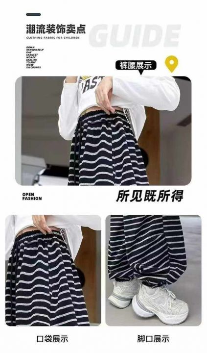 春秋新款撞色条纹男女童通知休闲斜纹棉卫裤,独立包装,图片款,码数110-14...