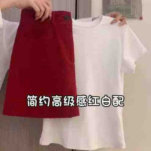 [發]韩系百搭显瘦红色半身裙224件独立包装有吊牌 码数L到2xL红色半身...