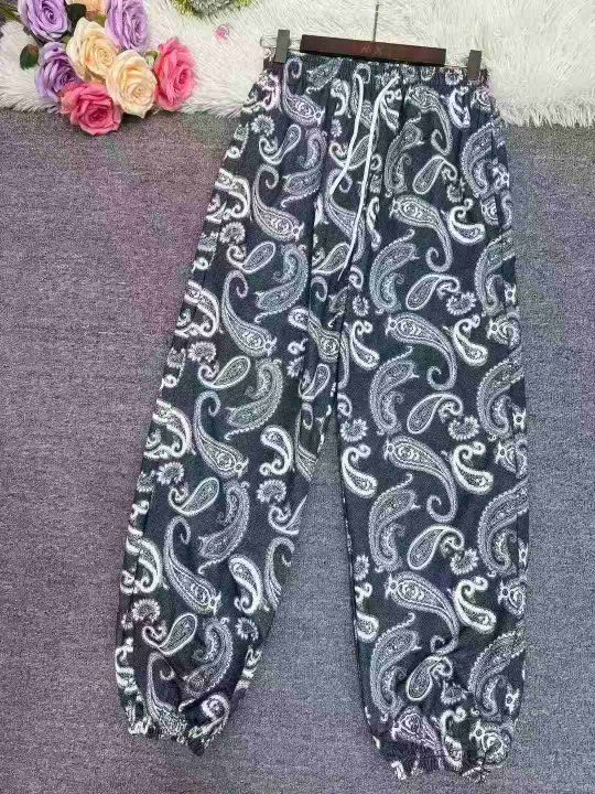 188条,腰果花印花休闲裤男秋季新款欧美ins潮牌嘻哈老爹裤宽松束脚裤子,独...