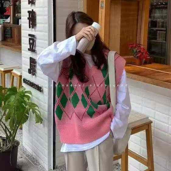 秋冬新款宽松百搭慵懒风提花V领叠穿套头毛衣马甲,独立包装,均码面料柔软...
