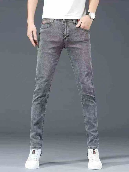 弹力牛仔裤男款2025新款烟灰色修身小脚弹力直筒220件,独立拉链袋包装,图...